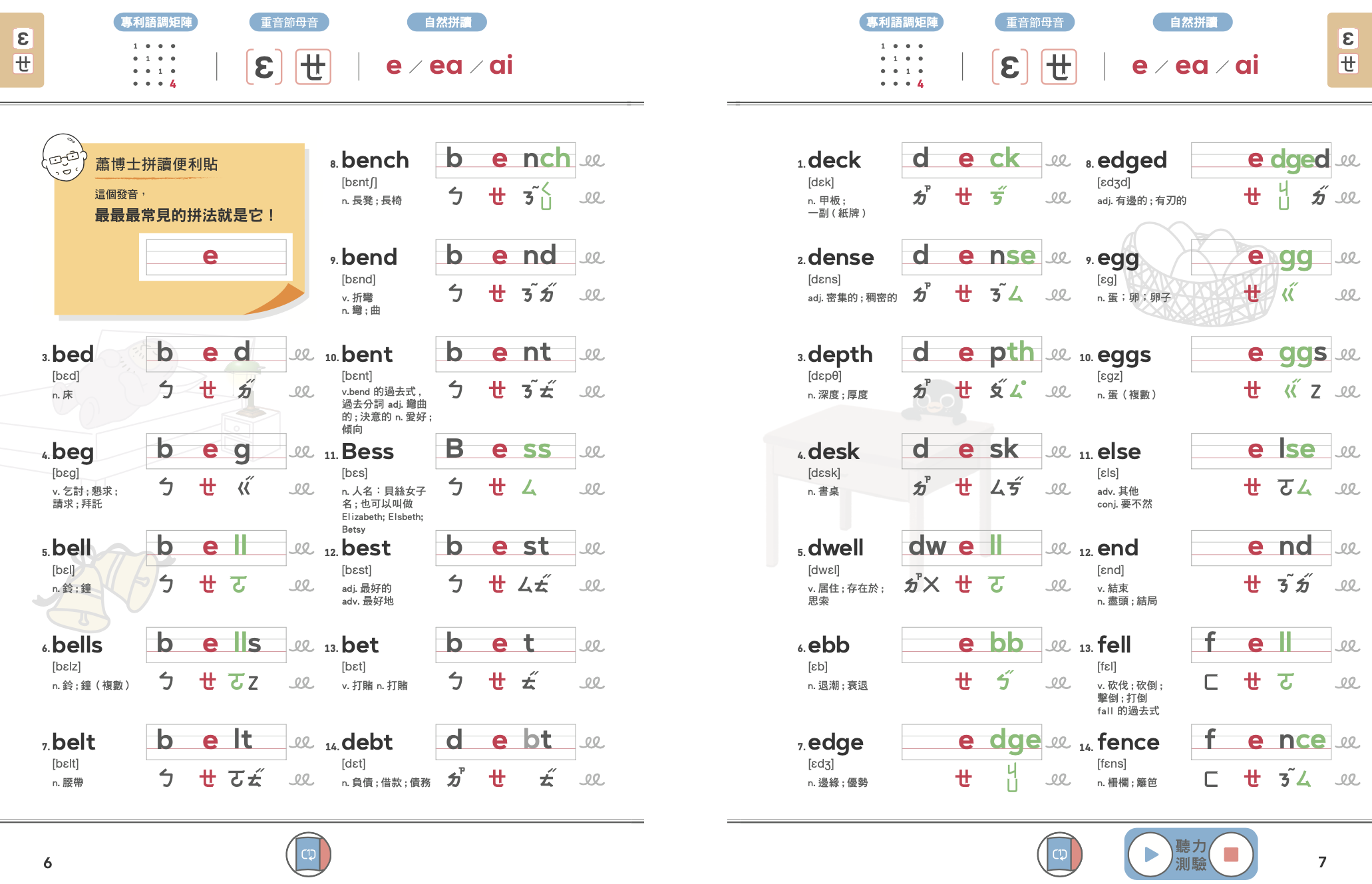 蕭博士用心研發,將單字好好收納,從單音節到多音節、從簡單到複雜、從規律到例外,循序漸進地排列。臺灣孩子只要從第一個字、唸到最後一個字,就會 Wow~ 恍然大悟,自動歸納出「自然發音 phonics」的規則。一旦內建了單字拼讀的語感,那些不在規則內的例外,也都變得簡單。