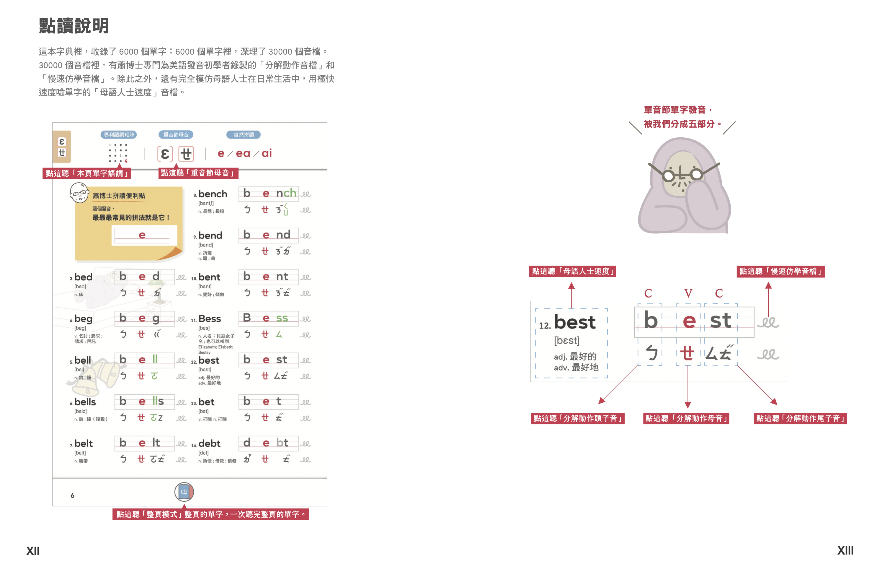 單音節獨有『CVC音素分解示範』+『慢速跟讀示範』